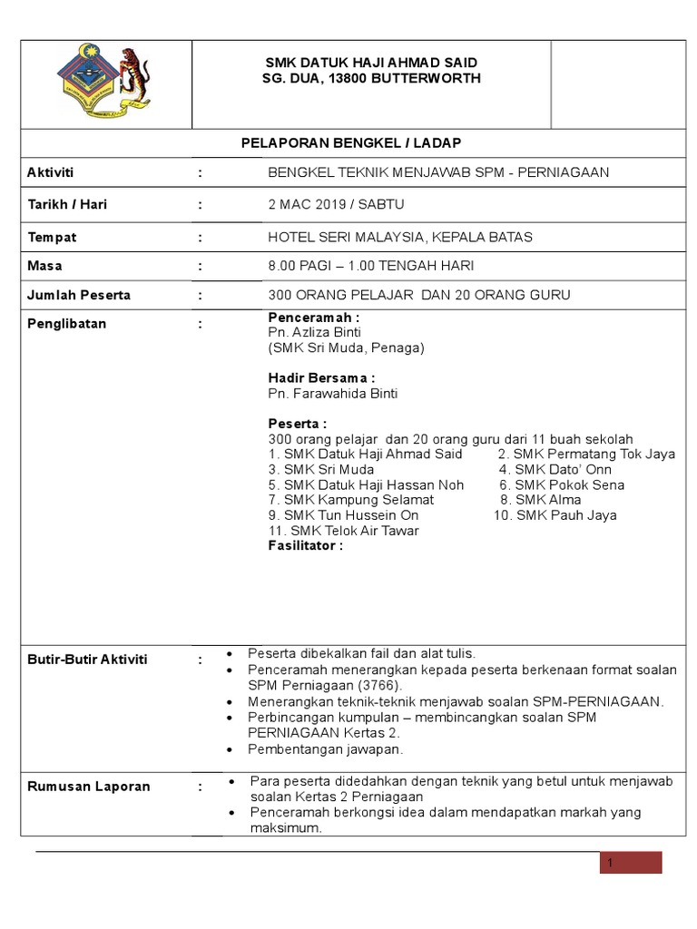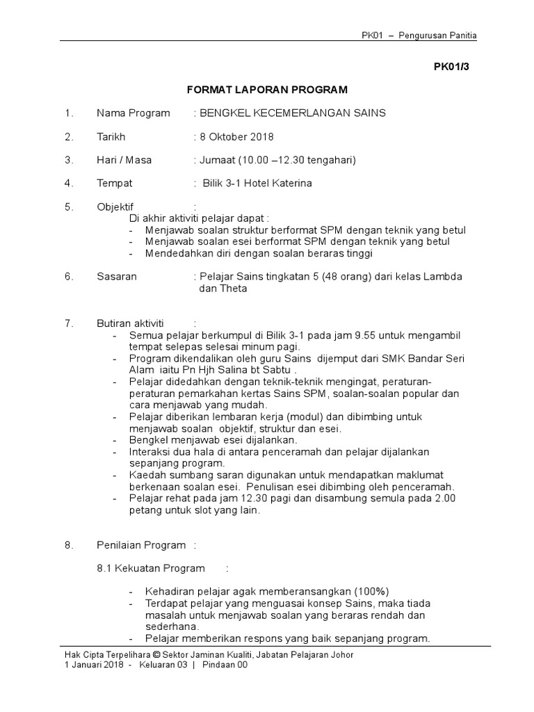 Hanita Ahmad SMK Seri Raub Page 1 KATA TUGAS Suatu kata kerja yang berfungsi untuk mengarah dan memandu. Doc Contoh Penulisan Laporan Tahunan Unit Kokurikulum Fony Nuli Academia Edu. Penguasaan eksperimen turut menyumbang kepada peningkatan kefahaman pelajar dalam menjawab soalan berbentuk saintifik yang dinilai dalam kerta 3.